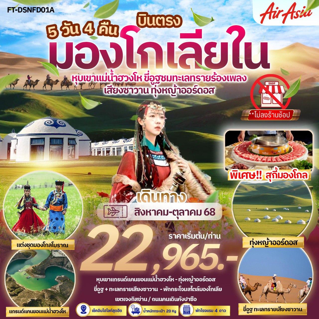 FTDSNFD01A251022A1 22 - 26 Oct 2025 5 D 4 N FT-DSNFD01A-มองโกเลียใน หุบเขาแม่น้ำฮวงโห ขี่อูฐชมทะเลทรายร้องเพลง เสียงซาวาน ทุ่งหญ้าออร์ดอส 5 วัน 4 คืน-FD AirAsia 24,965 Full